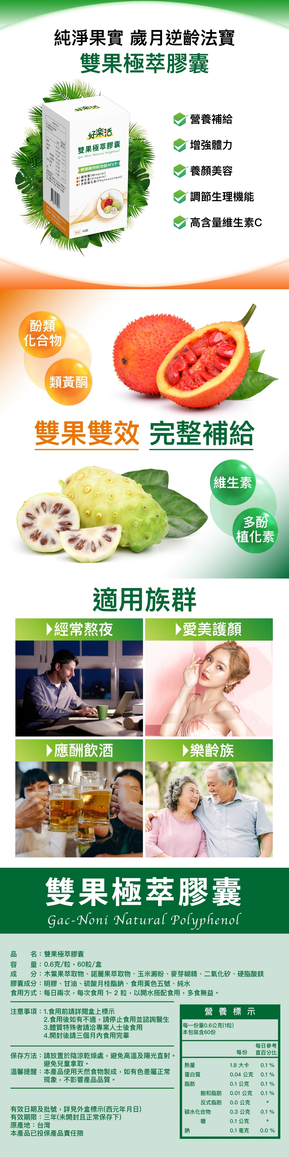 ‧雙果雙效,完整補給營養素。